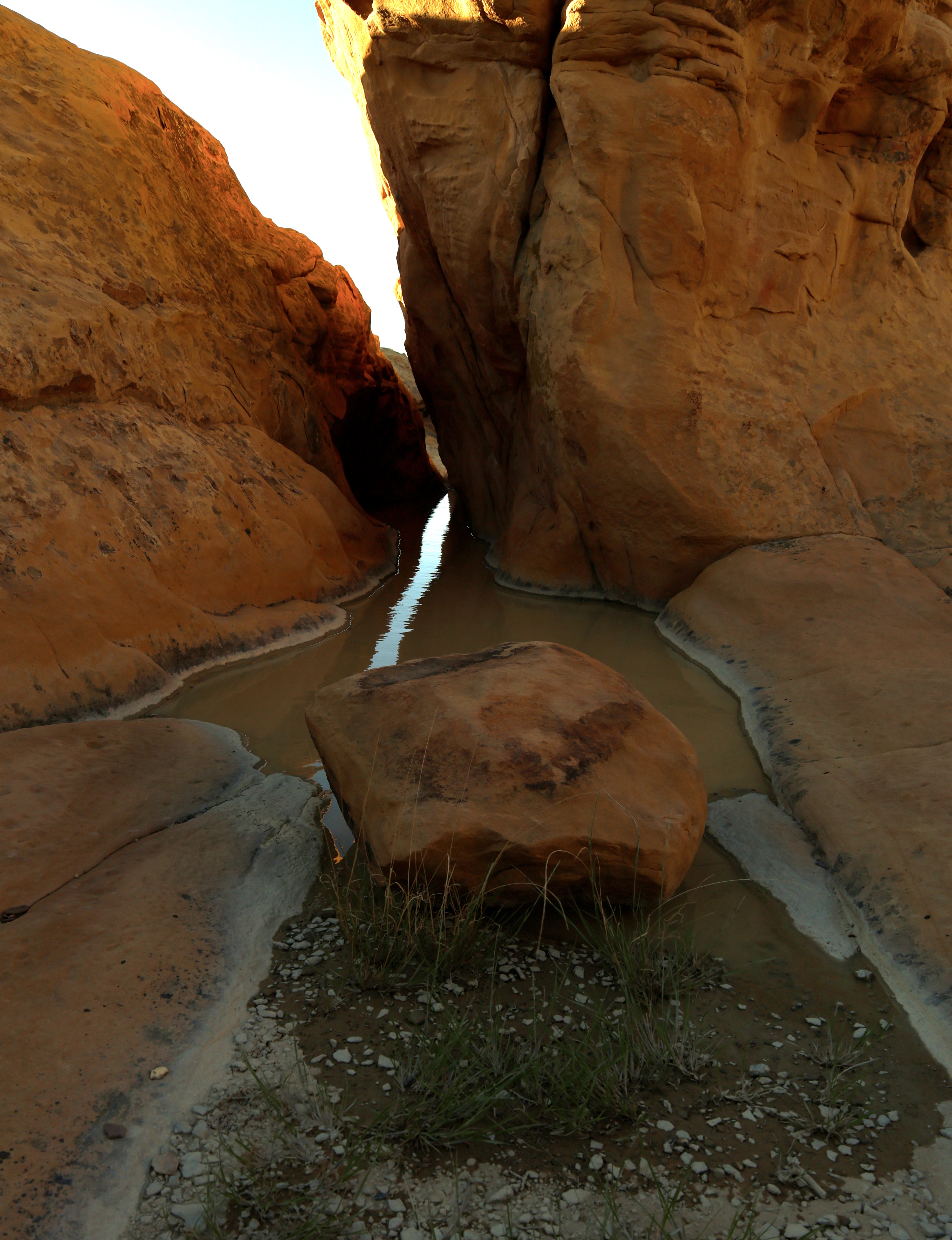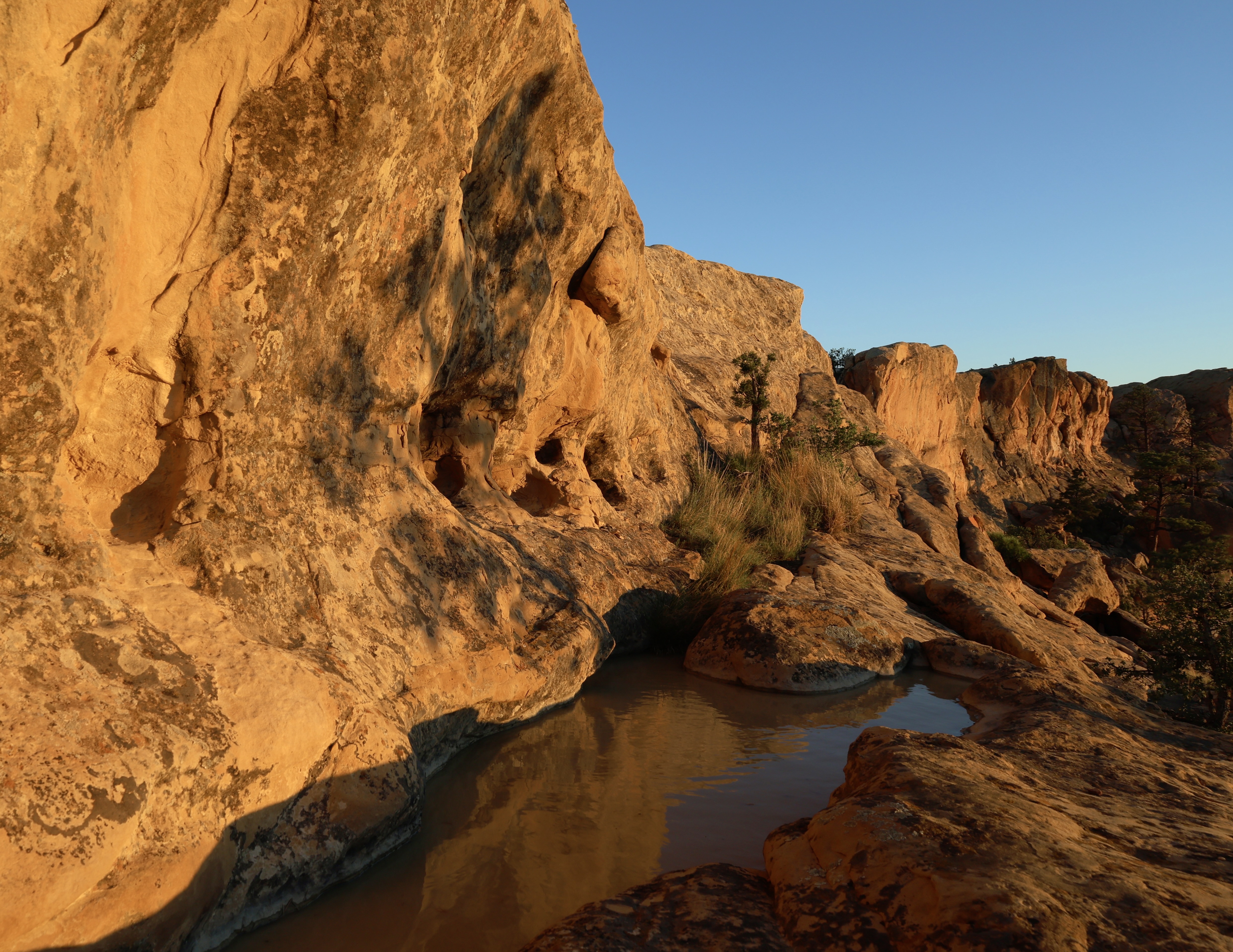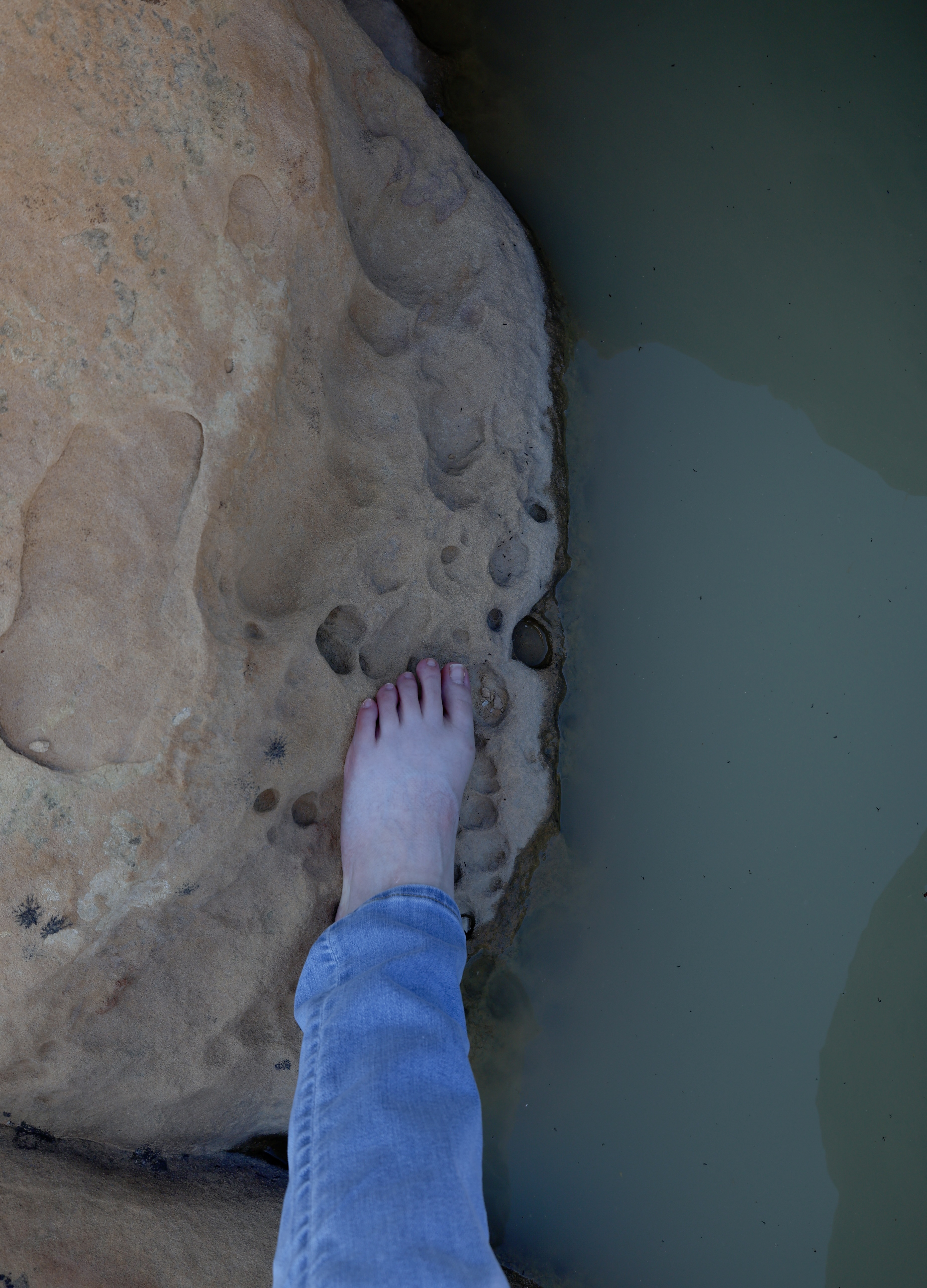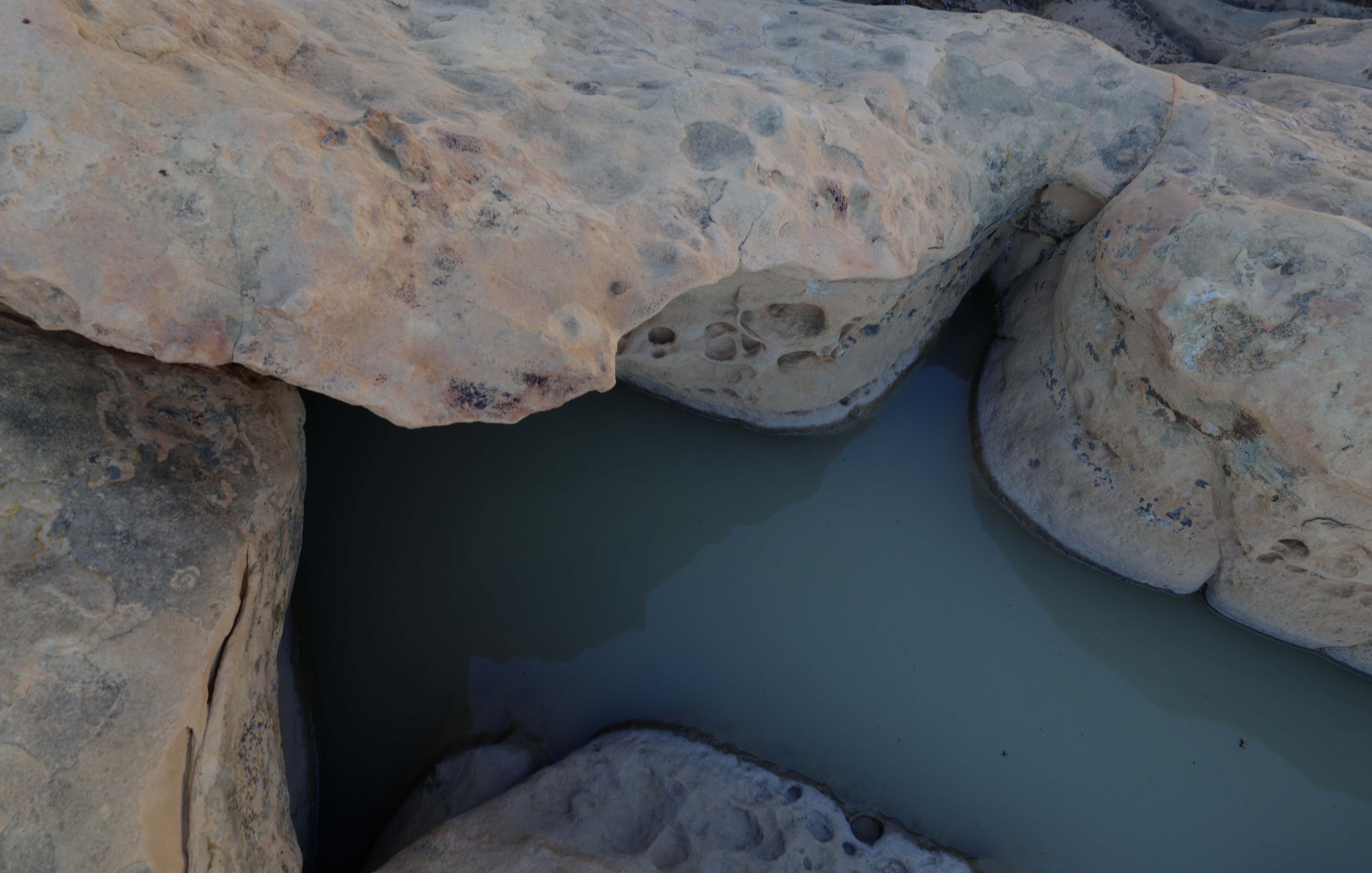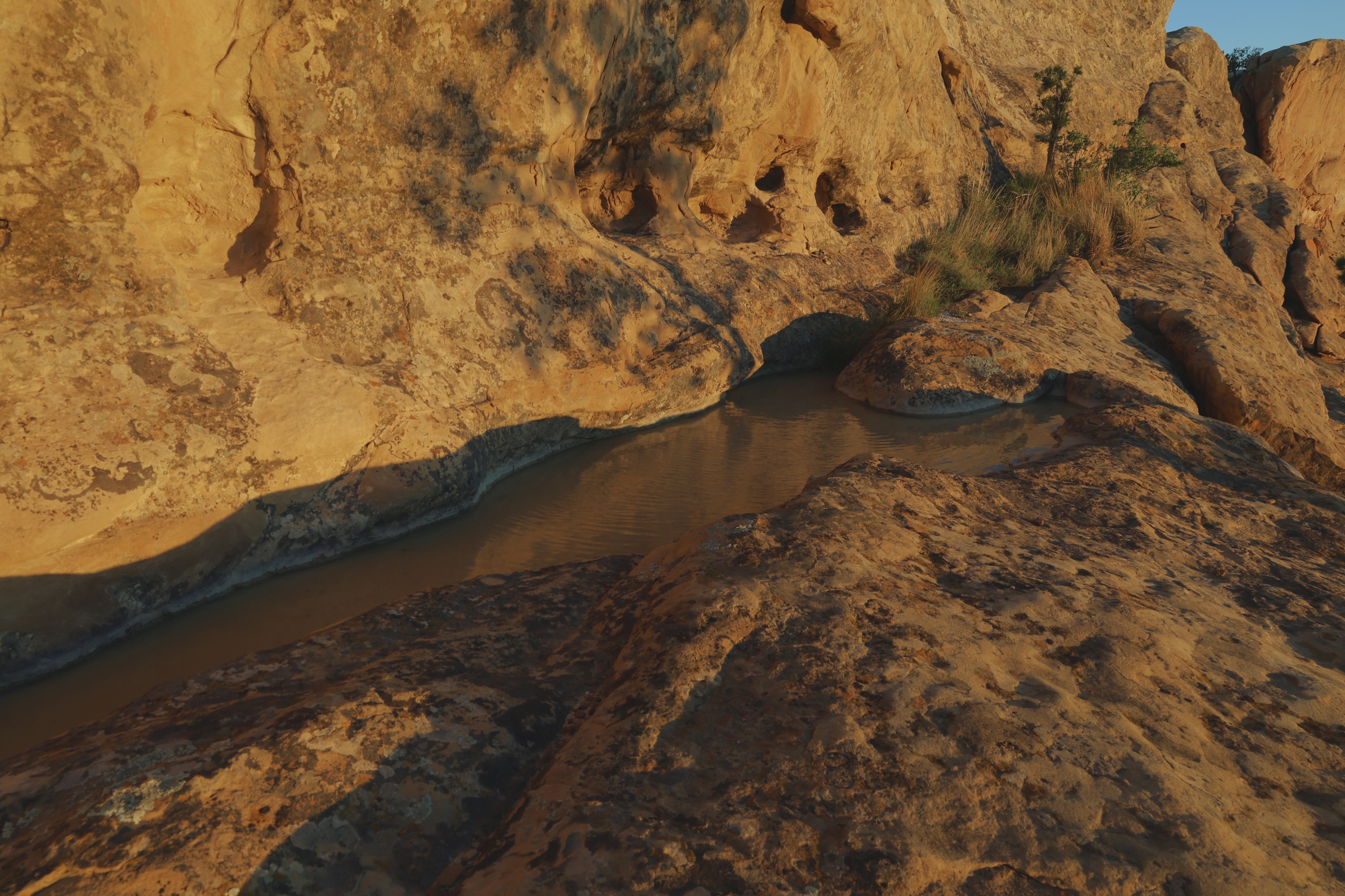 I visited Sandstone Bluffs, a national monument about an hour and a half from where I live, twice in one week. The first time was at the suggestion of Nicole, a friend and photography mentor who proposed it as the location for a photoshoot I wanted to do with her; the second trip was because I couldn’t stop thinking about how beautiful it was and that I must get back to try to capture some of those memories in photo form. It had rained a lot that week and there were ephemeral pools everywhere, not to mention incredibly greened-up surroundings and that amazing quality the desert gets of every color, texture, thing becoming deeper, richer, more after a good downpour.